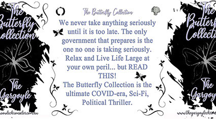 We never take anything seriously until it is too late. The only government that prepares is the one no one is taking seriously. Relax and Live Life Large at your own peril... but READ THIS! The Butterfly Collection is the ultimate COVID-era, Sci-Fi, Political Thriller.